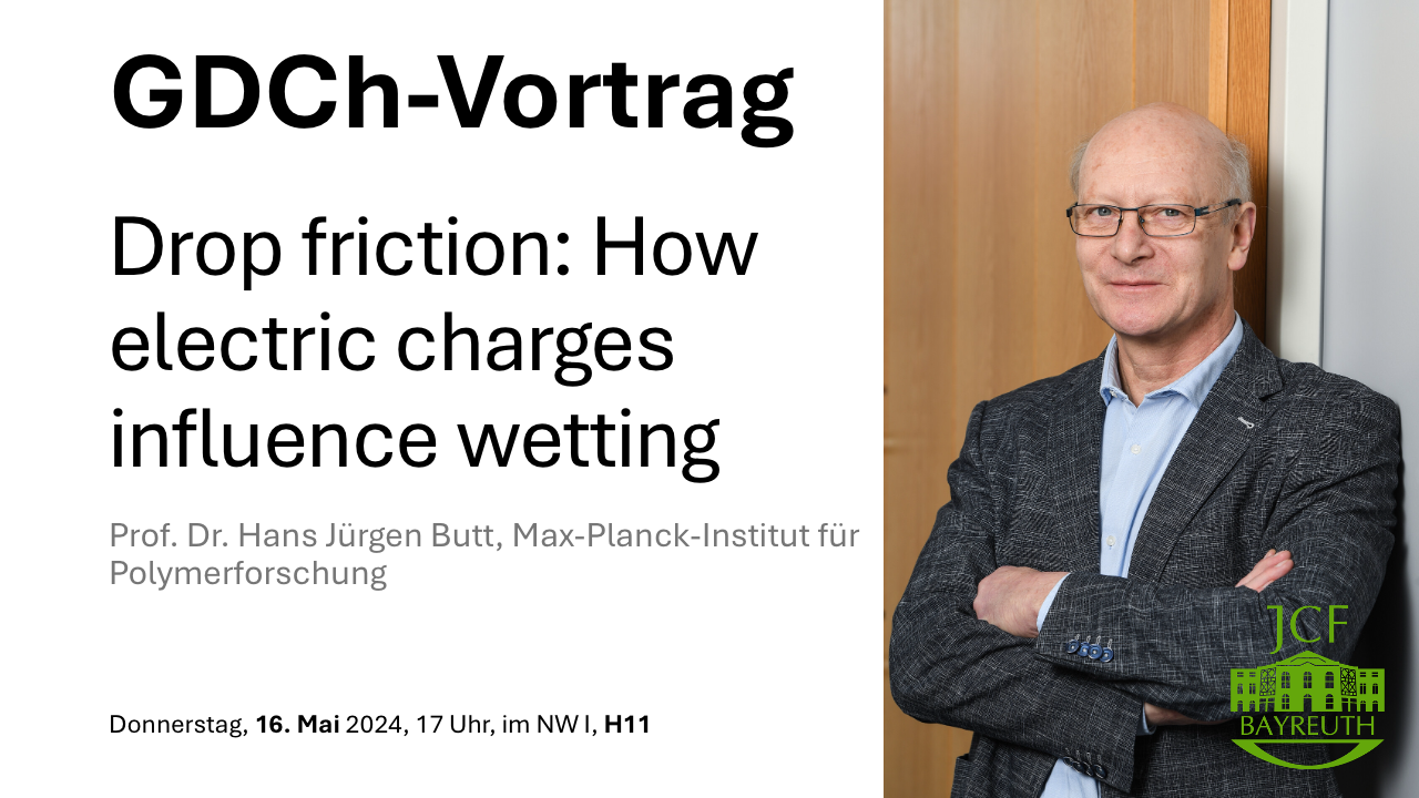 wir als JCF Bayreuth haben einmal im Semester die Möglichkeit eine eigene Ringvorlesung im Bereich Chemie zu gestalten. Als Sprecher haben wir dieses Mal den renommierten Direktor des Max-Planck-Instituts Prof. Dr. Hans-Jürgen Butt eingeladen.